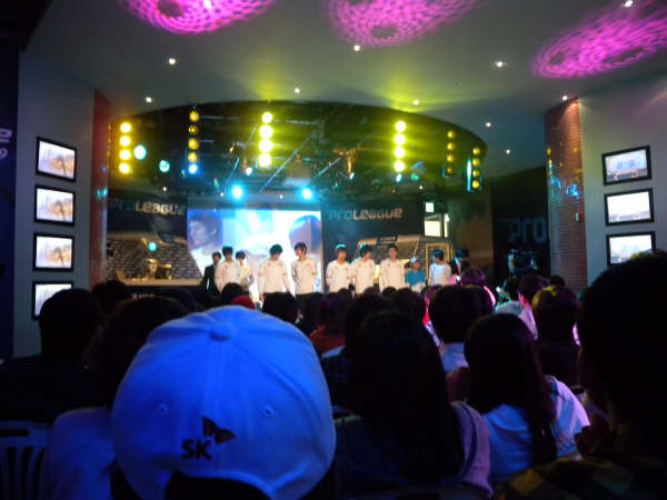 この日は文來洞でプロリーグWoongjin vs SKTを観戦。午前10時に行って名前を書いたら、このときすでに60番台。韓国も連休だったからかな、いつもより確実に人多かった。60番台ならまあ座れるとは思うけど、後ろの方だよ・・・。1番とか最初のほうは全部テギョンカフェだった。みんな気合入ってるなぁ。そして、この日初めてnokさんとnokさんの彼氏さんもいっしょに観戦することになってたんだけど、二人が集合時間に間に合わず、立ち見になってしまった。文來は席とっておいてあげられないから仕方ない・・・。