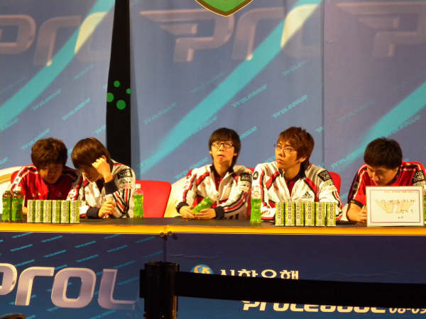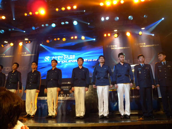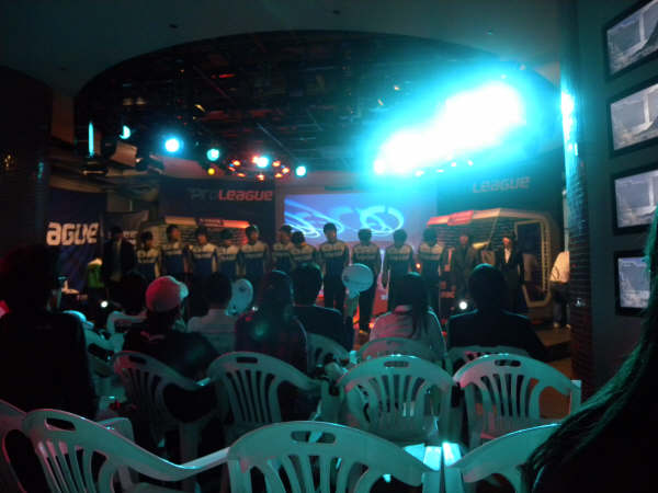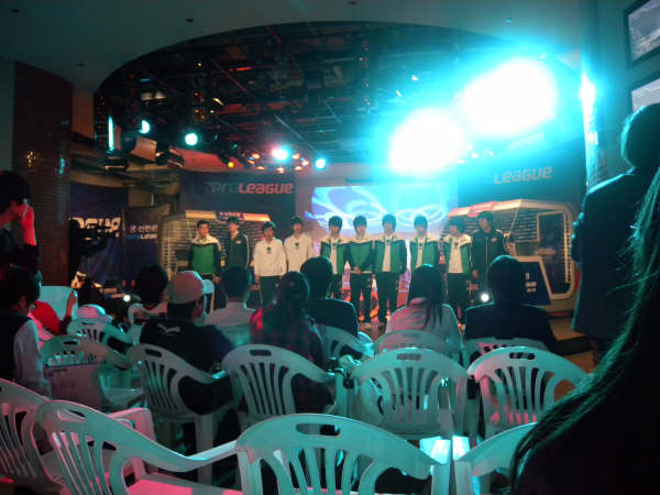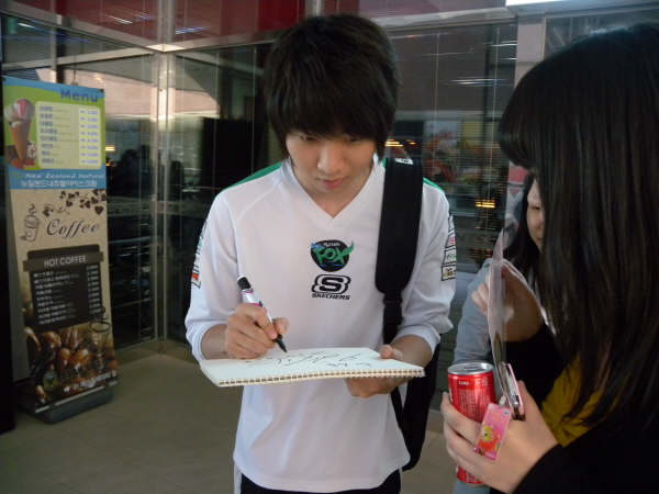この日はスターリーグの予選の日。予選は基本オフラインなので、競技を観戦することはできないのだけれど、たくさんの選手が競技場の中を行ったり来たりするし、勝てばファンミもあるので、選手を見に行くコアなファンが集まります。ただしシードの選手は予選やらないので、現在最高の技量を誇る選手たちは来ません。前回優勝したイジェドン選手とか、あたしの好きなキムテギョン選手とかも前回ベスト4だったので、予選はやらないのです。
