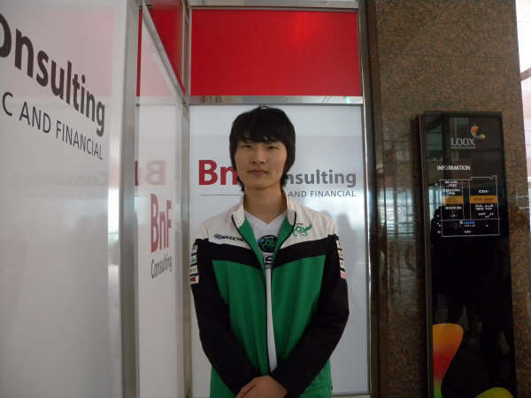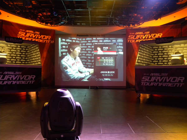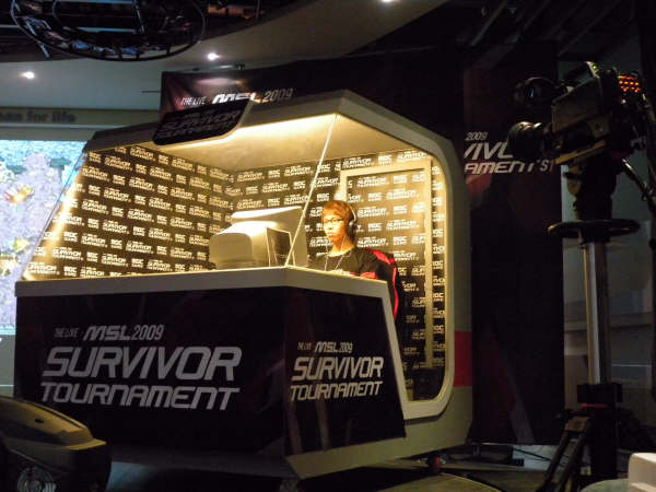 この日はMSL Survivor Tournamentダブルヘッターという恐ろしい日。午後2時競技開始だったので、いい席を取るために12時に競技場に到着。エレベーターを降りると、そこにはMBCのコソッキョン選手が!!!目が合ったので思わず話しかけてみると、さすが記憶力で有名なソッキョン。ちゃんと覚えててくれた!どこでどんな話したとか、そんなことまでちゃんと覚えててくれたよ。で、ご飯食べに行くところだというので、ささっと2ショットだけお願いして、見送った。